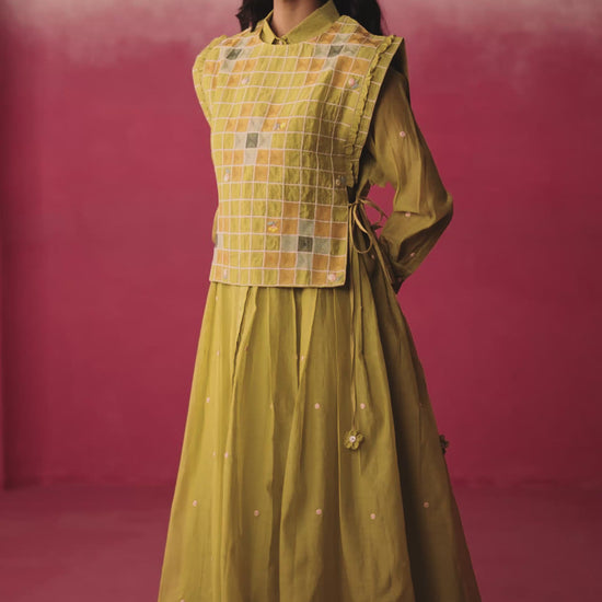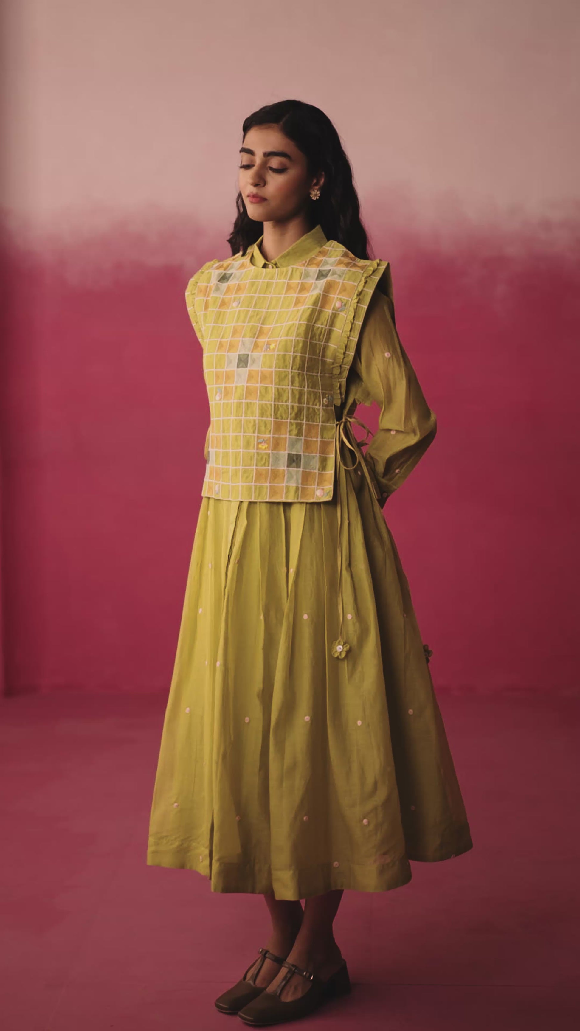 Full-sleeve shirt dress with subtle hand-embroidered dots